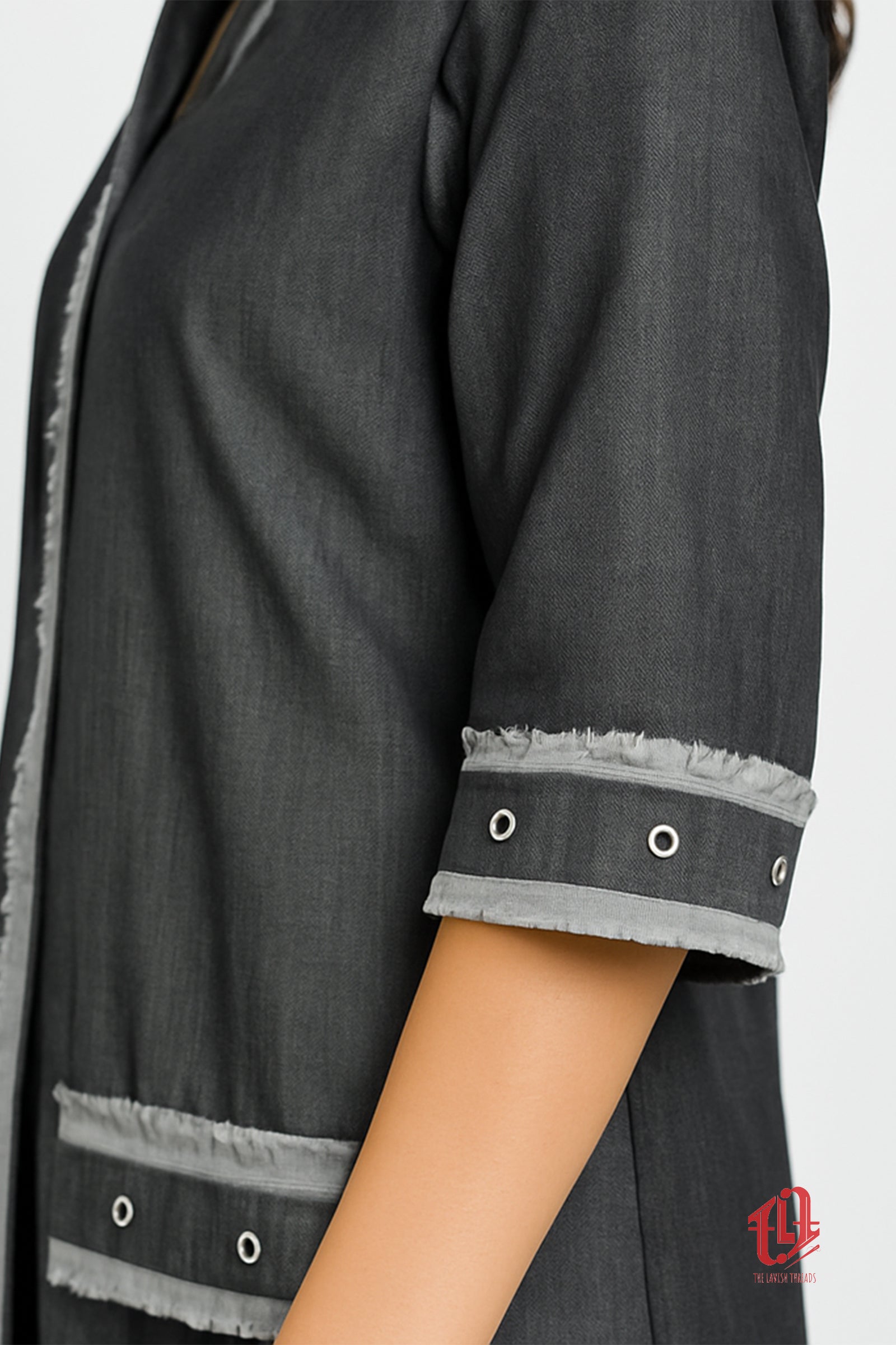 Experience elegance in this Premium Dress made from high-quality imported cotton and denim. Detailed with exquisite handwork in sophisticated grey and brown tones, it offers both durability and refined style. Perfect for those who appreciate quality craftsmanship and a timeless look.